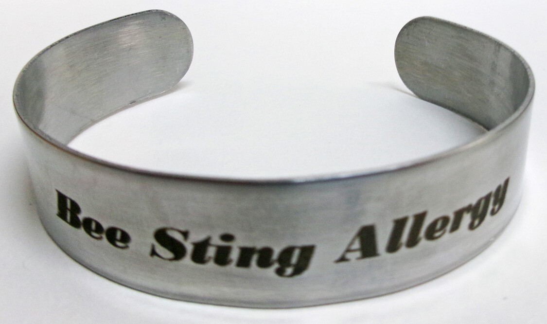 Medical Bee Sting Allergy Stainless Steel 5/8" x 6" Bracelet, Free Shipping.