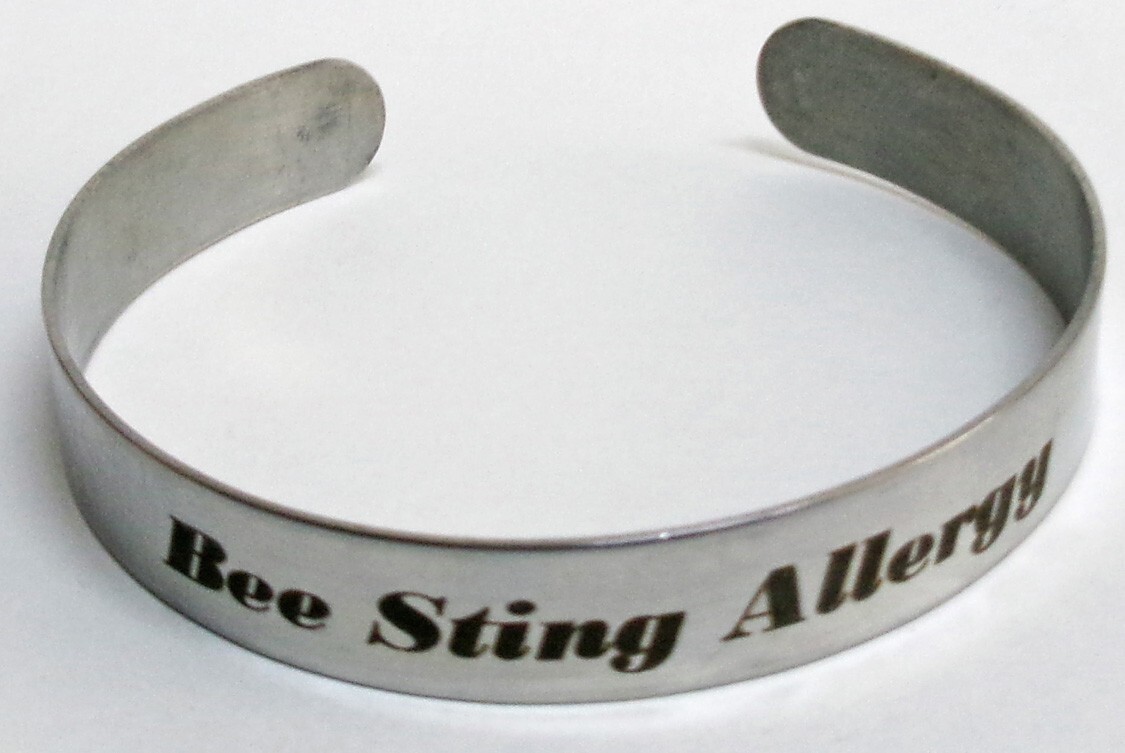 Medical Bee Sting Allergy Silver Aluminum 3/8" x 6" Bracelet, Free Shipping