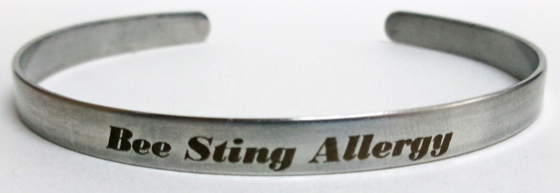Medical Bee Sting Allergy 1/5" x 6" Silver Aluminum Bracelet, Free Shipping.