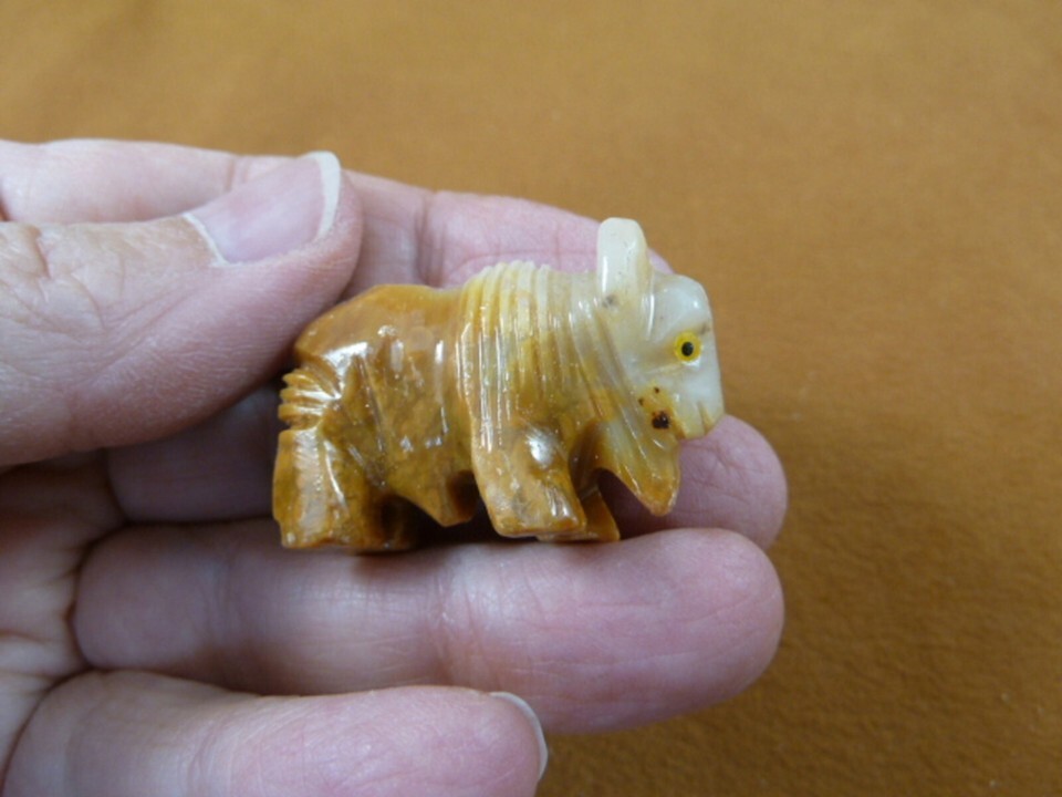 (Internal #Y-BUF-57). You are bidding on a great BUFFALO or bison figurine. Crafted in Peru of native soapstone (YELLOW TAN WHITE RUST RED GRAY marbled colors are natural), he measures 1-3/8" long x 1-1/8" tall. New, no defect.
