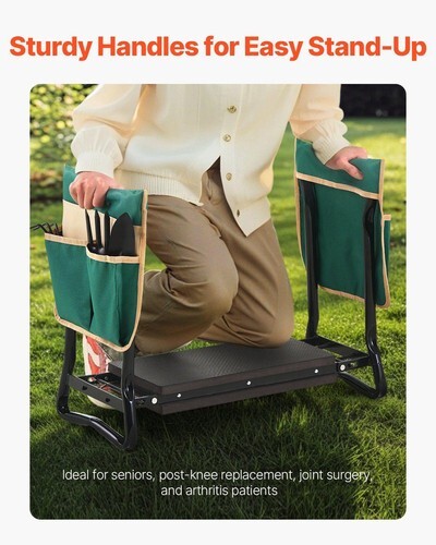Dual Tool Bags for Organization: The garden bench for kneeling and sitting features two durable 600D Oxford fabric tool bags that keep gardening essentials like scissors, gloves, and small trowels within easy reach. No need to constantly get up to find tools-this feature enhances efficiency and allows for a more productive gardening experience.