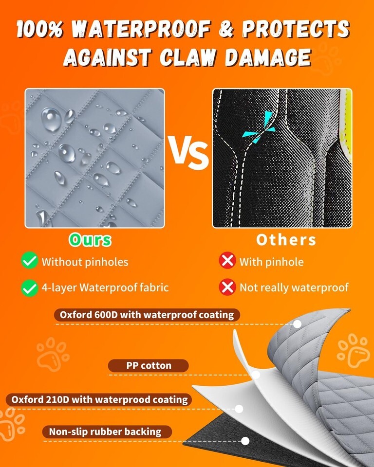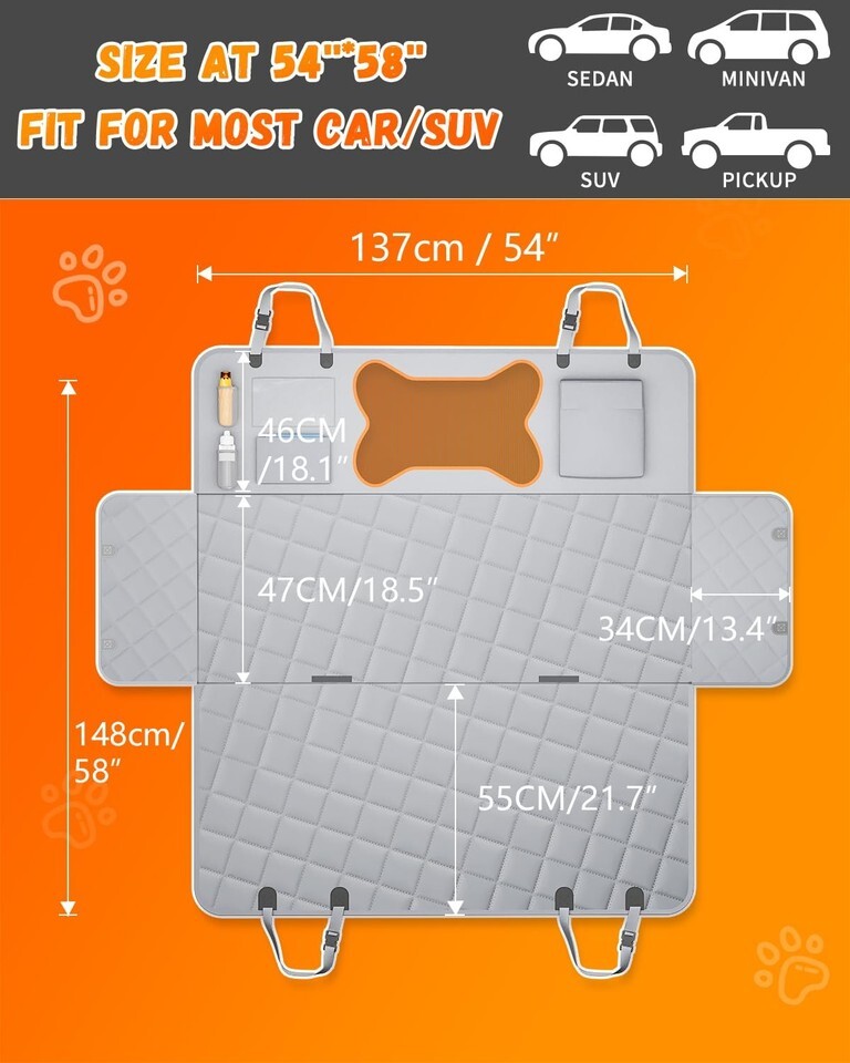 WATERPROOF DESIGN: Features a durable waterproof construction to protect your car's back seat from pet accidents, mud, and moisture