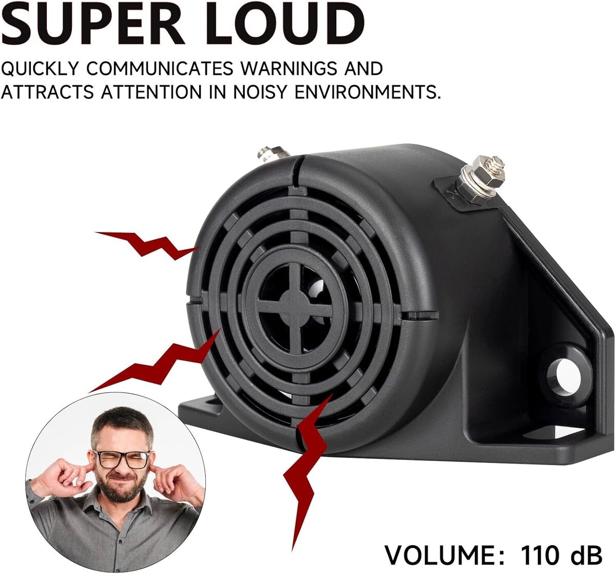 Produces a powerful beeping sound that is 110 dB, it will be louder in practical use.