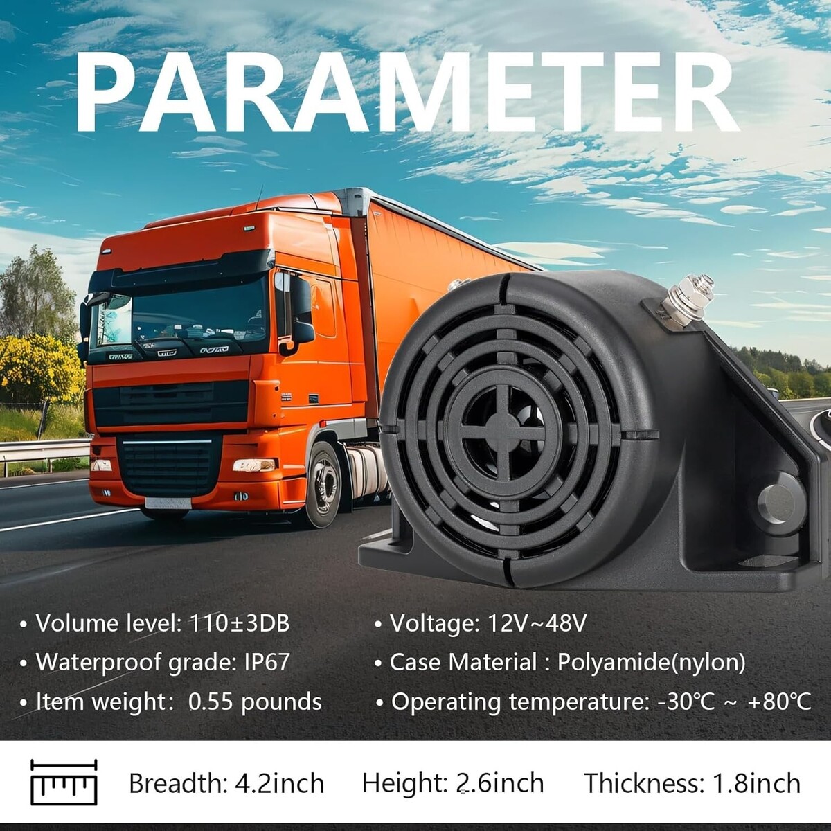 Back-up alarm is made for heavy-duty commercial use, best for industrial heavy duty commercial construction vehicles.