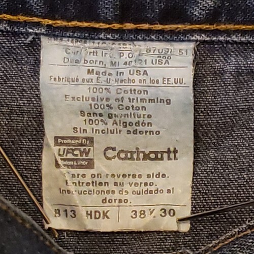 Carhartt Distressed Jeans Mens 38x30 B13 Original Dungaree Baggy Blue Denim USA