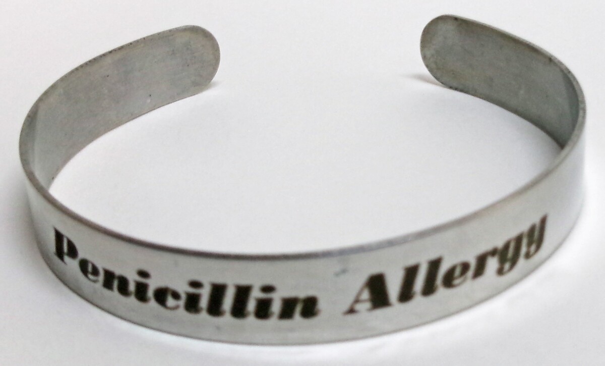 Medical Penicillin Allergy 3/8" X 6" Silver Aluminum Bracelet, Free Shipping.