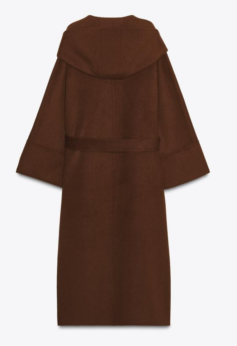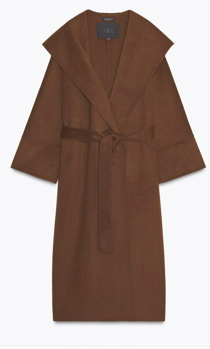 NWT $229 ZARA ZW COLLECTION LIMITED EDITION BROWN LONG BELTED WOOL COAT - S