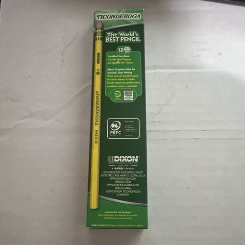 2015 Dixon Ticonderoga Pencils Wood-Cased Graphite Yellow #2 HB Eraser 12-Count new box