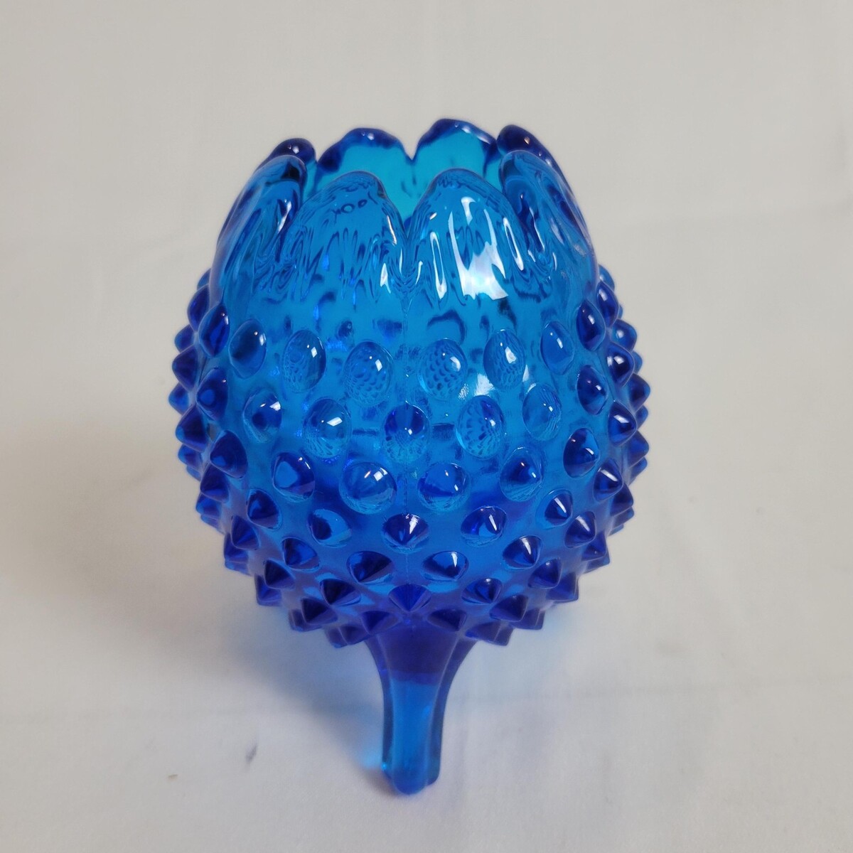 Vintage Fenton Glass Colonial Cobalt Blue Hobnail 3 Footed Egg Shaped Vase 5"