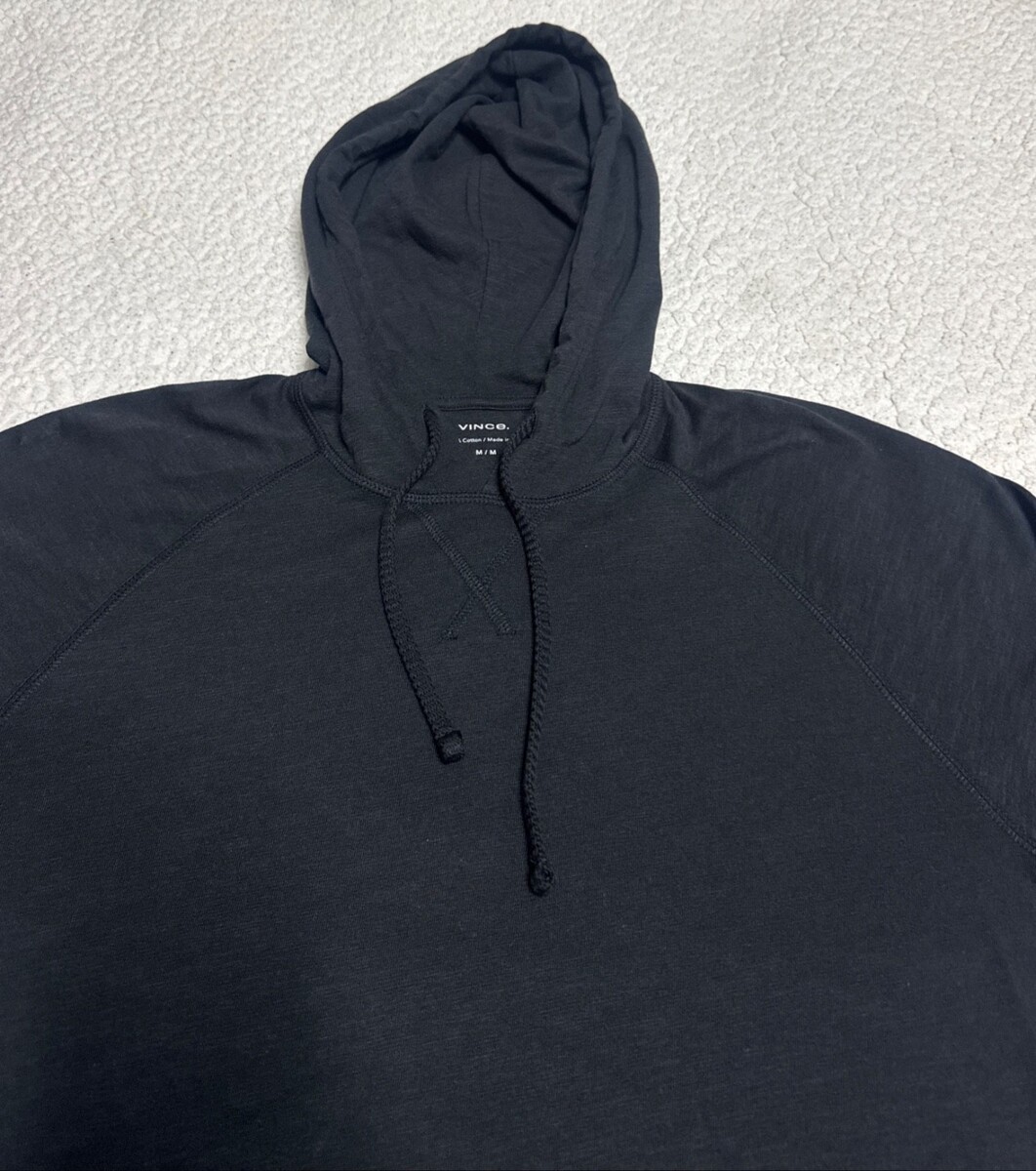 Vince Men’s 100% Cotton Casual Hooded Long Sleeve Black Pull Over Shirt Size M