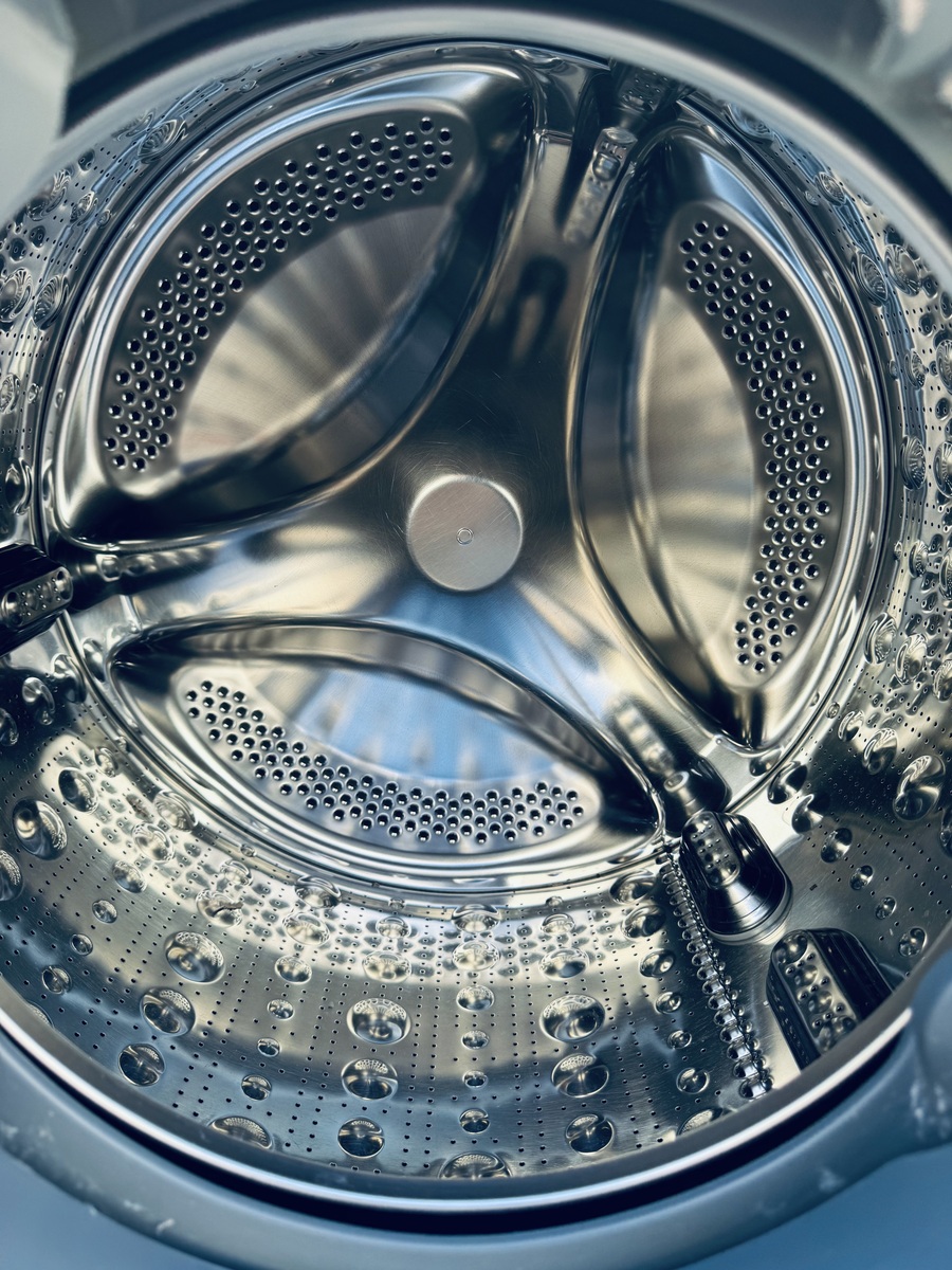 • Additional Conveniences — LED display, child lock, end-of-cycle signal, adjustable legs, and stainless steel drum for durability and hygiene.