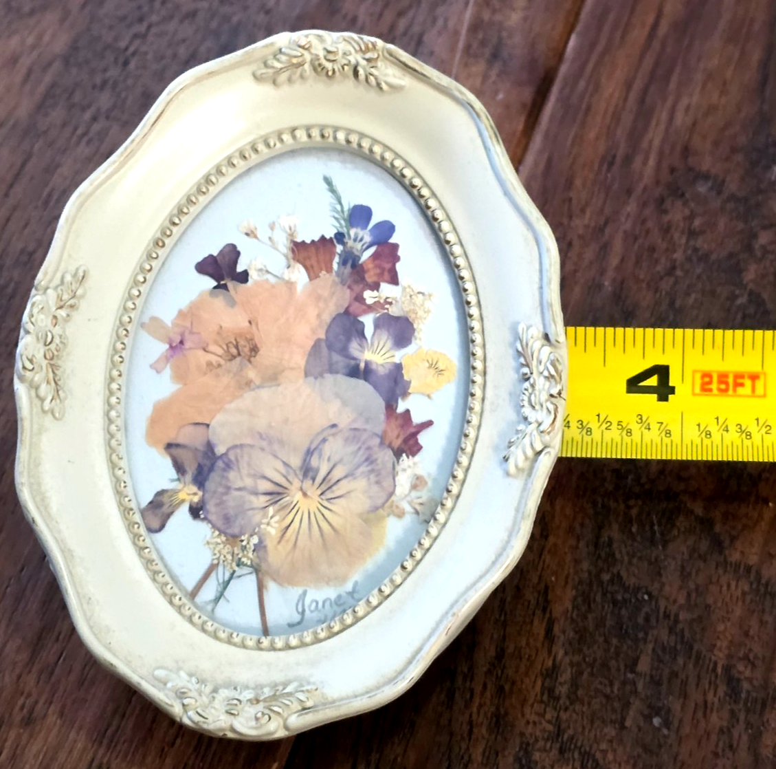 Small Dried Pressed Flowers Decor Oval Frame Stand Alone Purples Beiges Vtg TKBX