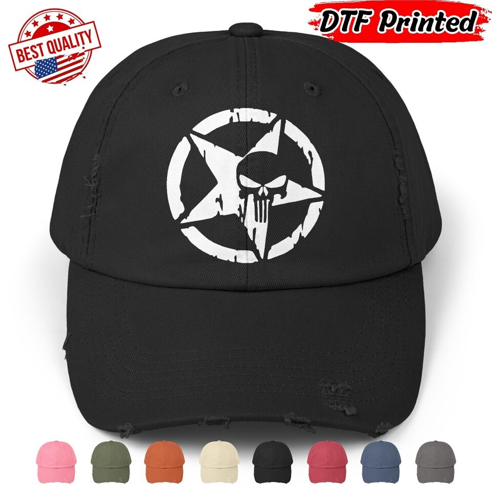 Military Distressed Cap US Army 90s Vintage Star Skull Logo DTF Printed