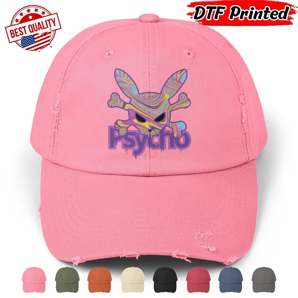 Novelty Fashion Rabbit Distressed Cap Hat Bunny Style Psychedelic 100% Cotton