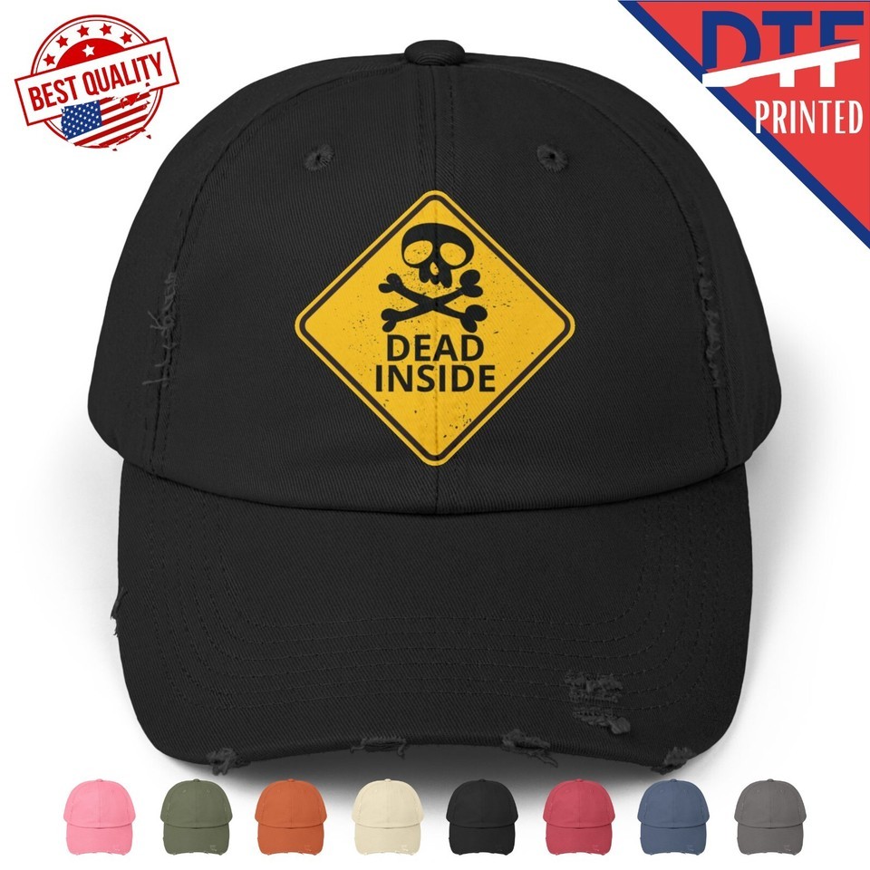 Skull Dead inside Sign Funny Sarcastic Humor Hat Distressed Cap DTF Print Logo