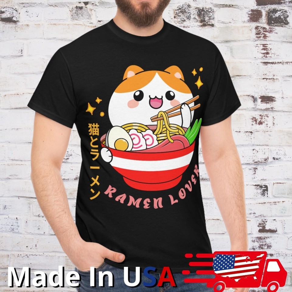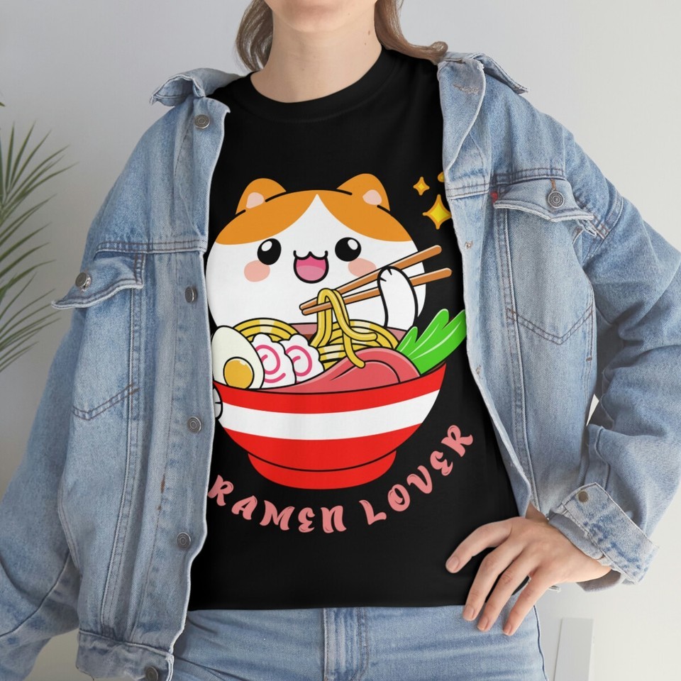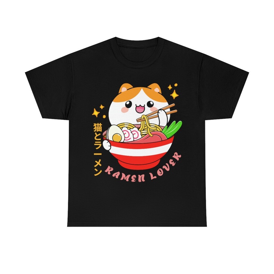 Kawaii kitty enjoying ramen on a tee: Noodle Japan T Shirt Anime Manga Cosplay