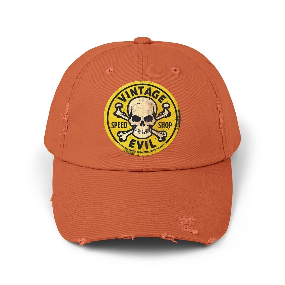 Vintage Evil Hat Retro Car Motorcycle Oil Classic Distressed Cap DTF Print Logo