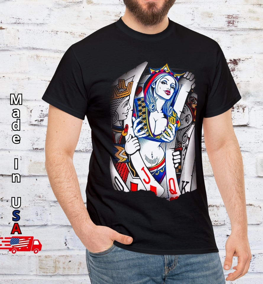 King of heart and Sexy Queen T Shirt, Vintage Poker Old School Clothing Tee