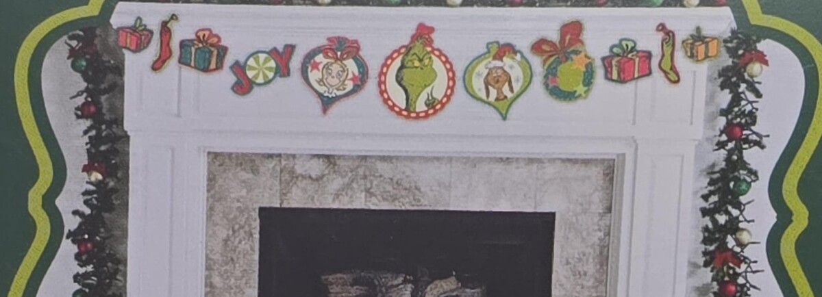 It is an 8-foot-long garland decoration featuring iconic Grinch characters.