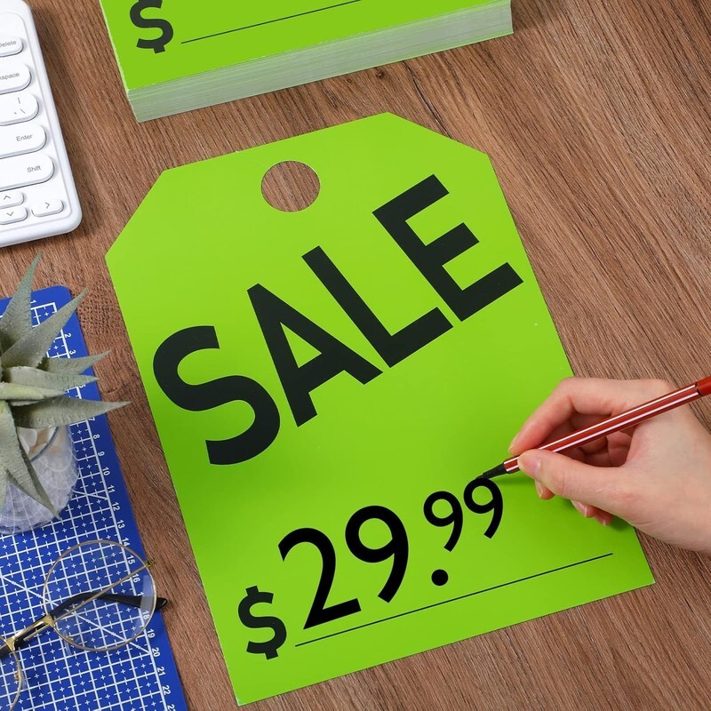 100 Pack Sale Tags Car Sale Sign Dealer Mirror Hang Tags 8.5 X 11.8 Inches Green