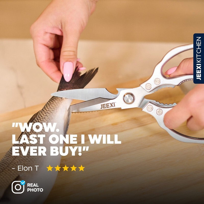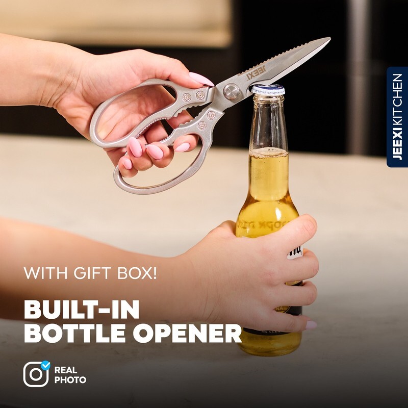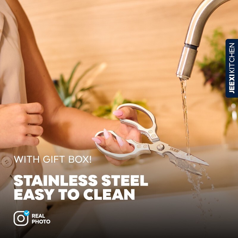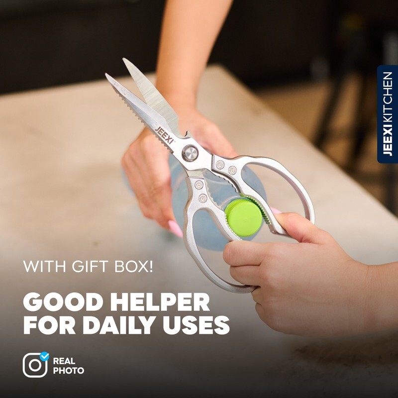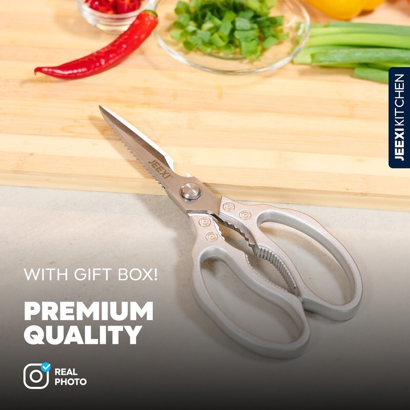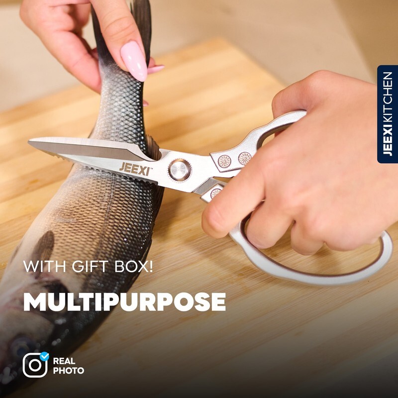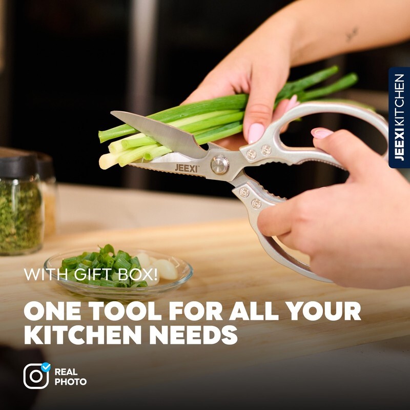 JEEXI?s Stainless Steel Kitchen Scissors are a must-have for any kitchen. Made with high-grade materials, these heavy-duty kitchen shears are designed to handle even the toughest cutting tasks with ease. Whether you're slicing through meats, poultry, fish, or bones, these scissors will make your cooking experience effortless.