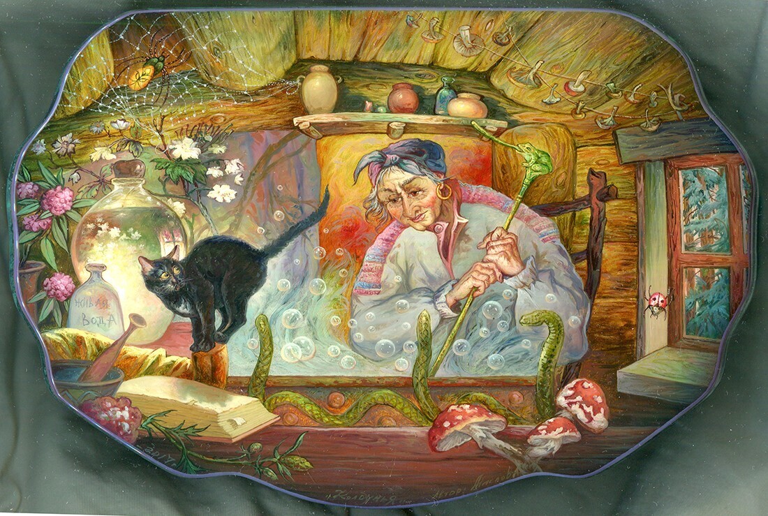 Baba-Yaga is the oldest character of the Slavonic mythology. Originally Baba-Yaga was the goddess of death; people imagined her as a woman with the snake tail who guarded the entrance into the other world and accompanied the souls of dead people into the Kingdom of the Dead. Baba-Yaga is the most famous figure in Russian fairy-tales that represents evil.