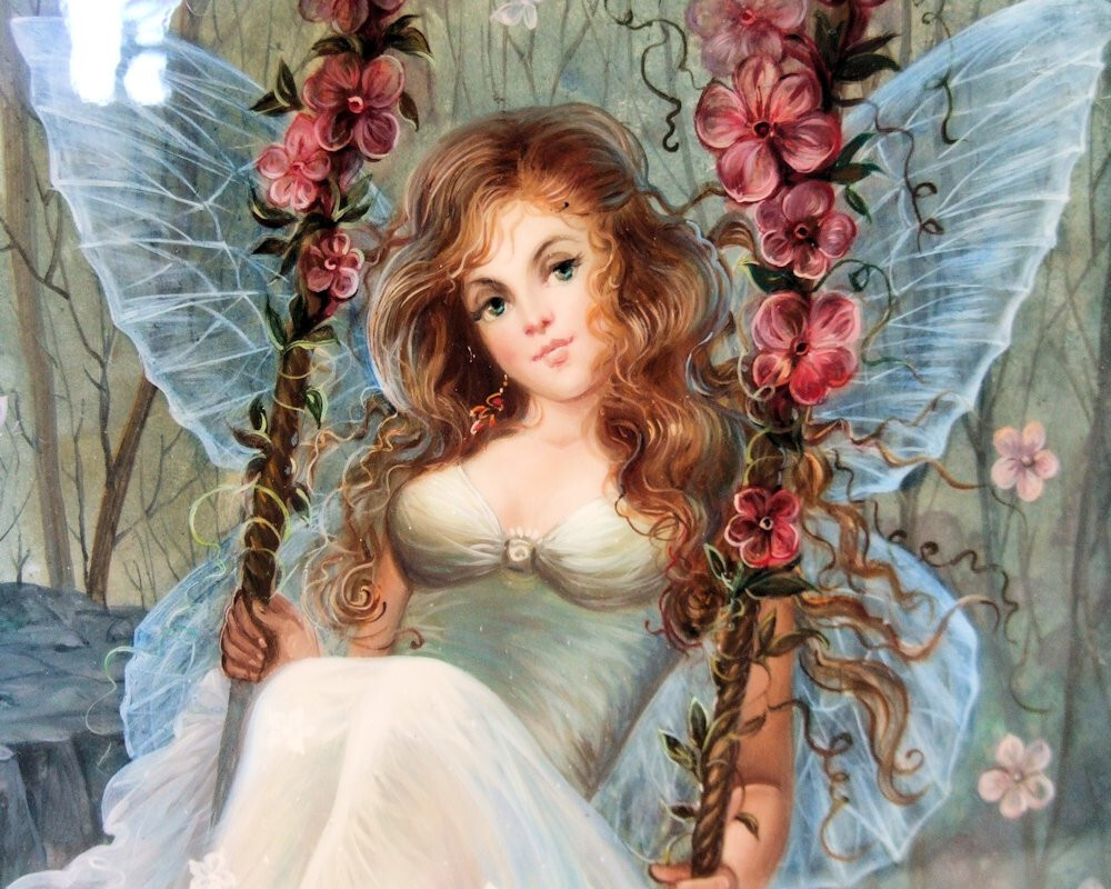 Here we have a goregous box by the artist T Frolova a graduate of the Fedoskino school of Lacquer Miniatures. In this work frolova features a Fairy swinging on a rosebud swing with