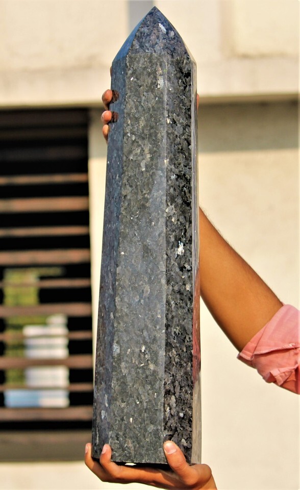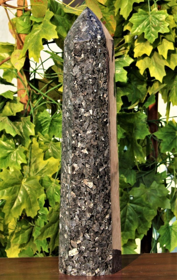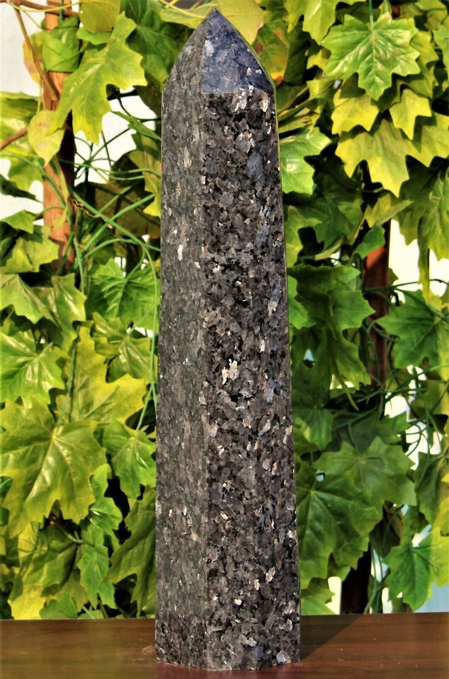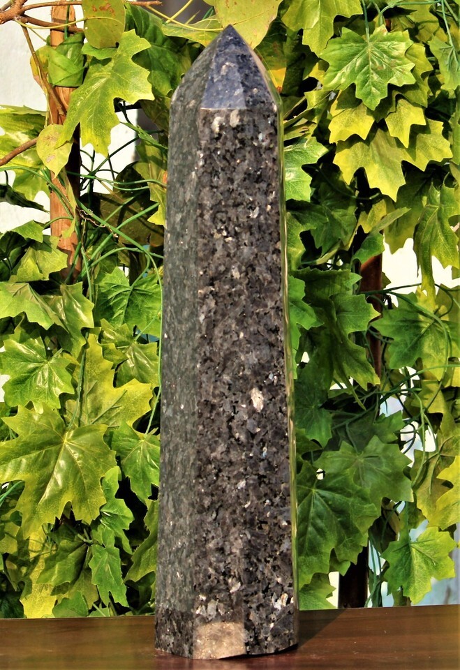 XXL 40.6lb Black Larvikite Crystal Healing Stone Obelisk Tower Displat Statue