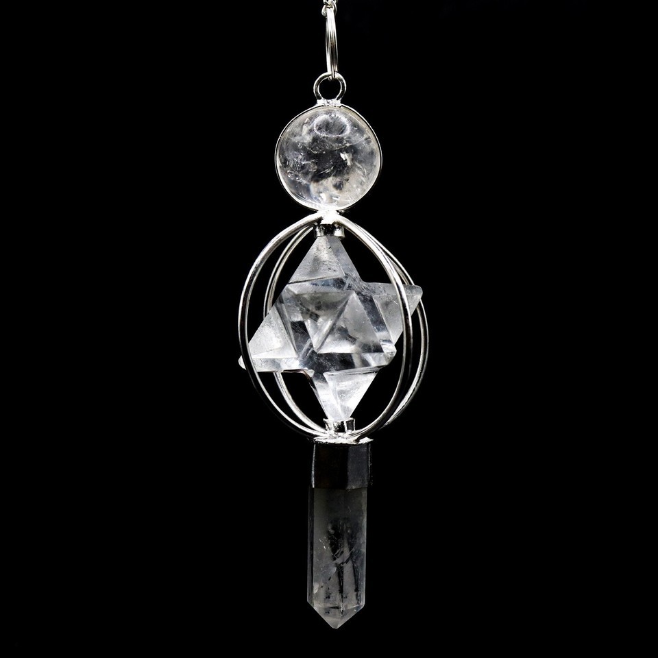 Clear Crystal Quartz Pointed Pencil with Small Merkaba Chakra Balancing Pendant
