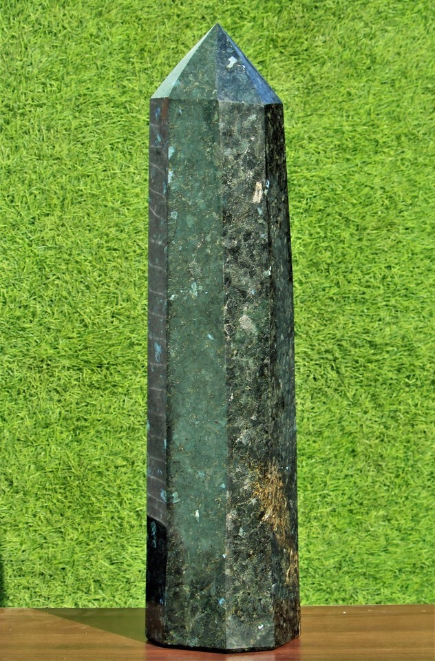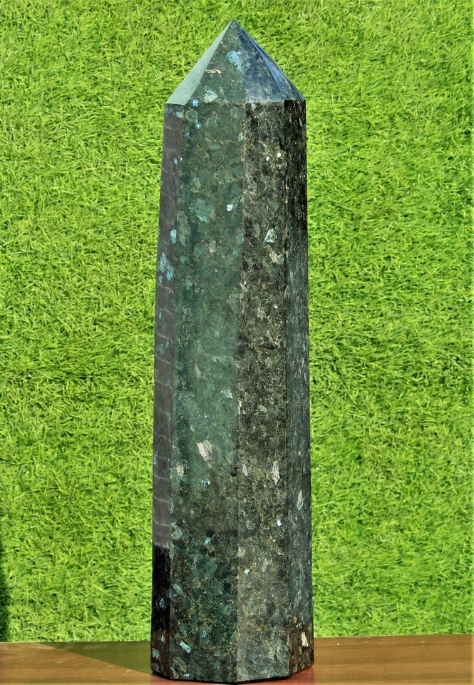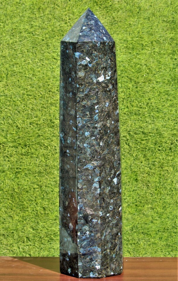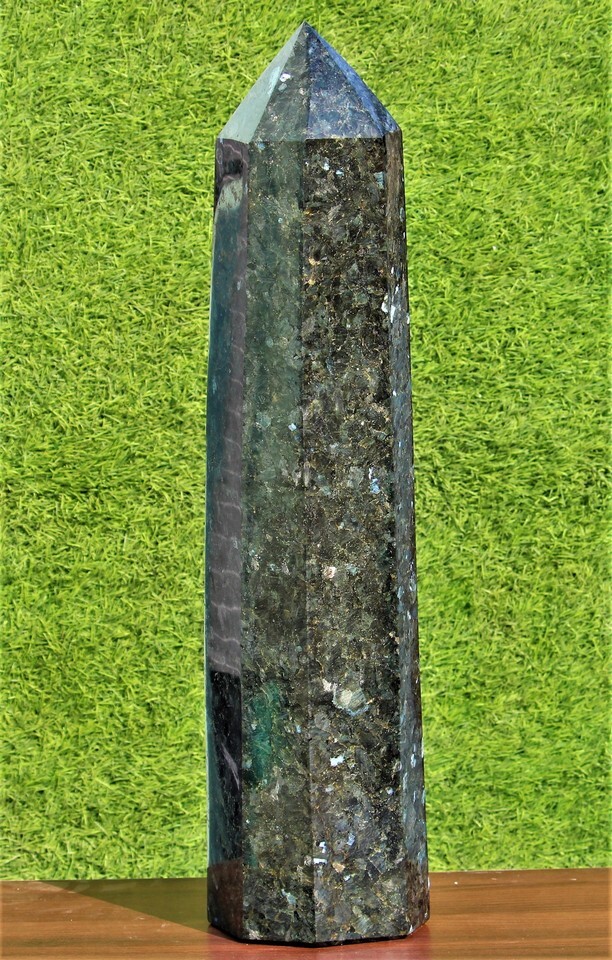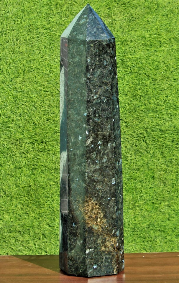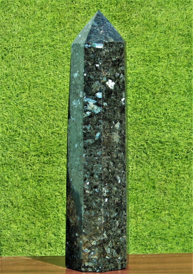 Giant 26.6" Black Larvikite Crystal Quartz Healing Energy Stone Obelisk Tower