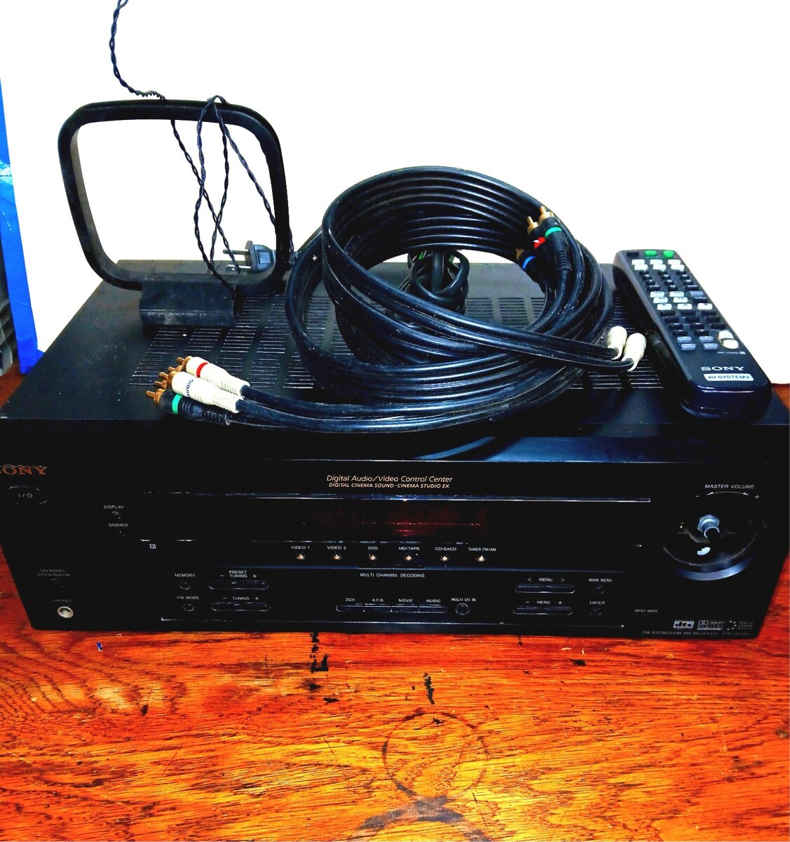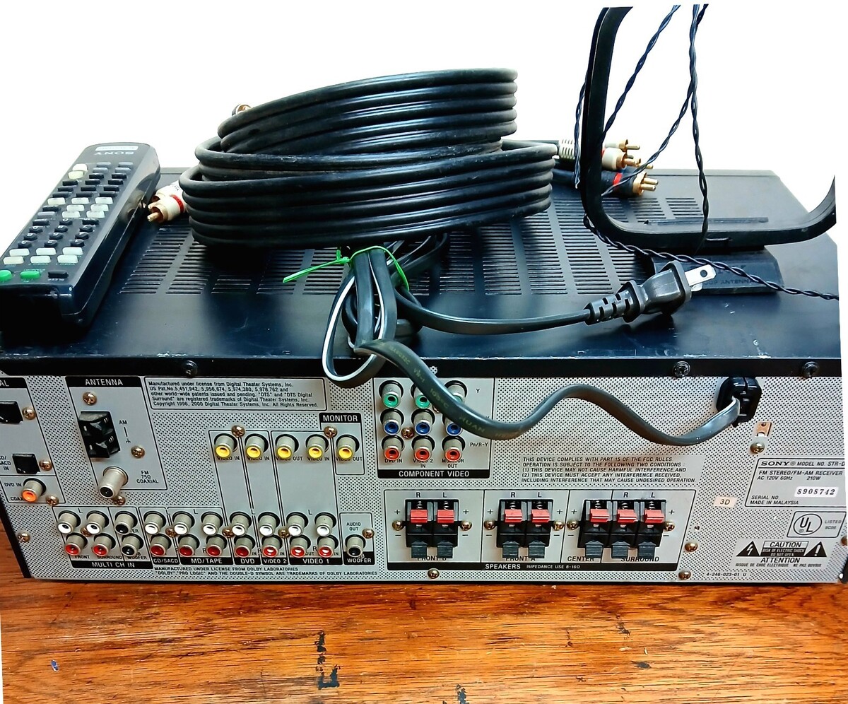 This is a Sony STR-DE595 Home Theater AV Stereo Receiver 5.1 Amp Tested Working. Includes remote, cables, antennae. It is missing the volume knob but can easily be replaced with universal knob. Will pack well and ship fast! Sorry, no local pickup