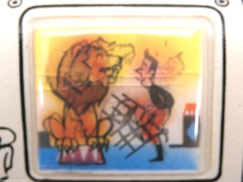 Fun vintage eyeglasses case with a circus scene in the Flicker Part. Its in great shape though the flicker thingy looks like it has some internal cracks inside, none outside. It doesn't affect the scene at all. About 6" long.