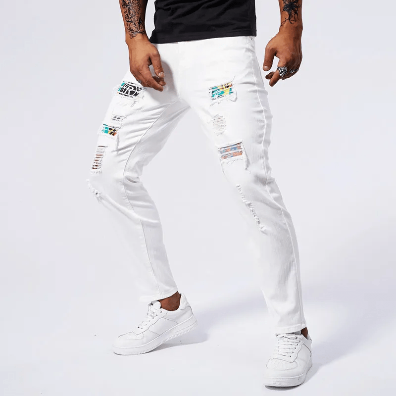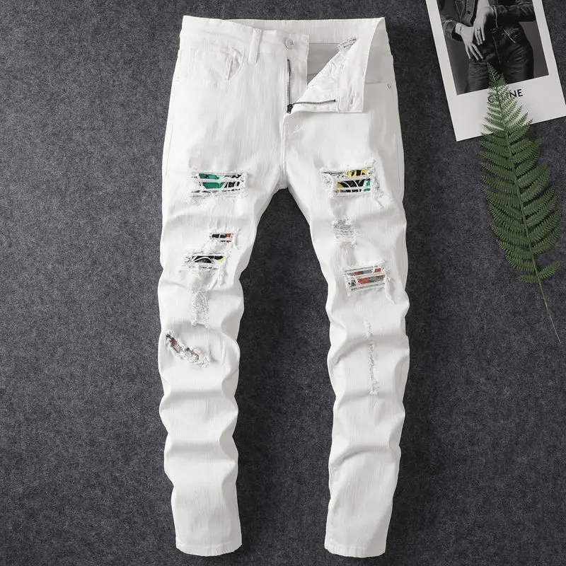 2025 White Elastic Hot Diamond Denim Ripped and 20 similar items