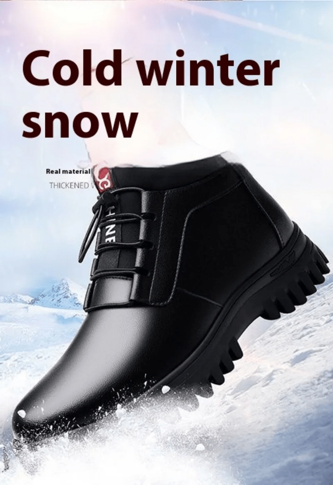 Men's Cotton Shoes Winter Warm Padded High Waist Leather Men's Shoes Simple