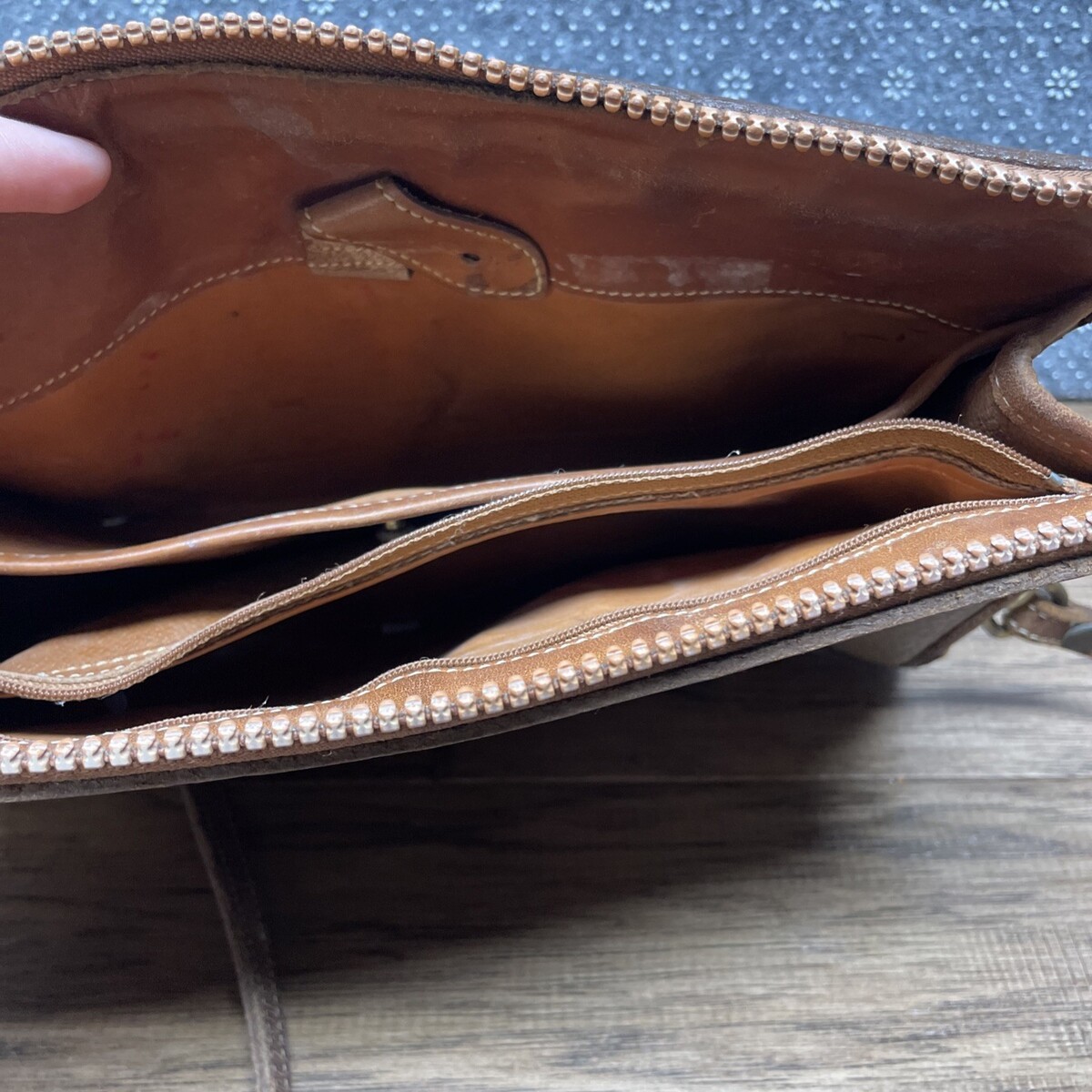 Straps and sides are beginning to peel. Front exterior has some discoloration. Some slight wear on hardware. Please see photos for details