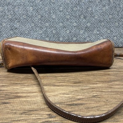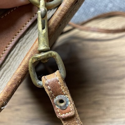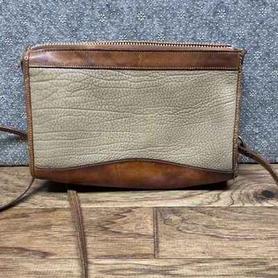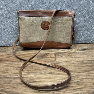Vtg Dooney & Bourke Taupe Pebbled Leather & Brown Crossbody Shoulder Purse LG