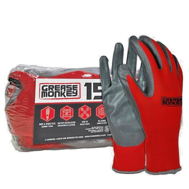 Protect your hands while working with these high-quality Grease Monkey Nitrile-Coated Work Gloves. Made in the USA, this pack of 15 gloves is perfect for personal or professional use. The gloves are designed with a durable and comfortable material that will make any task easier.