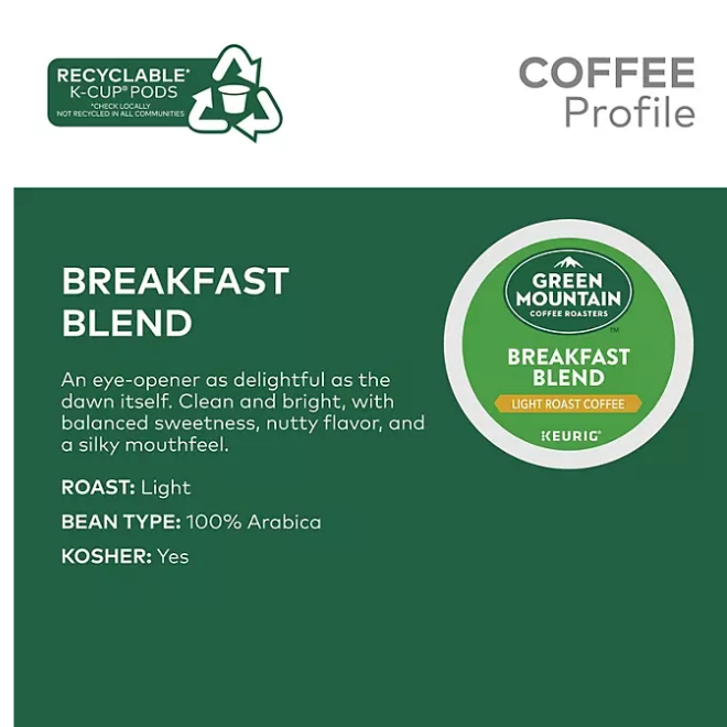 Green Mountain Coffee K-Cup Pods, Breakfast Blend (100 ct.)