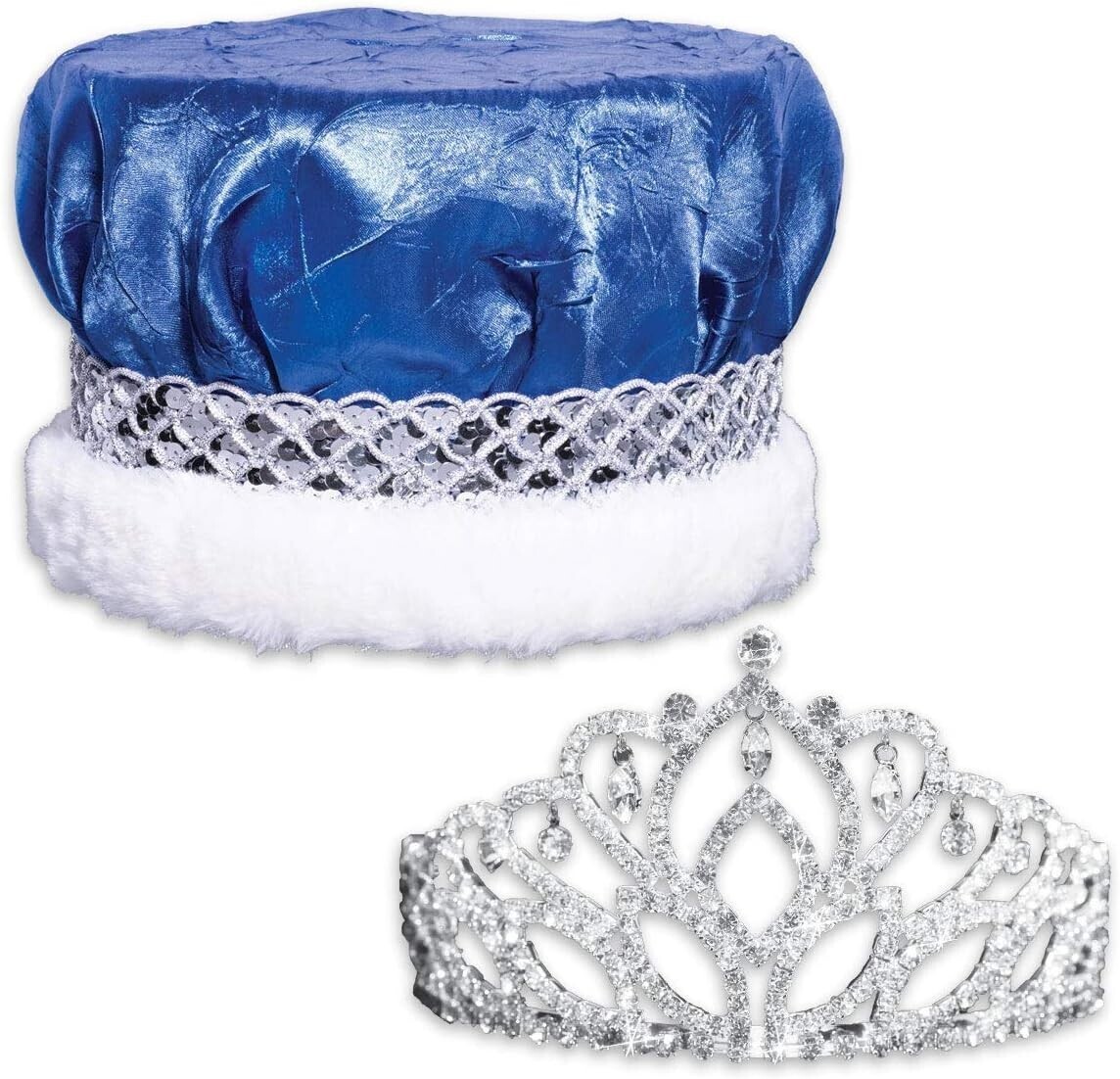 About this item Royalty set includes a stunning 2 7/8" high x 5 1/2" wide Mirabella Tiara and 6 1/2" high Crushed Satin Crown. Tiaras and crowns are suitable for most teens and adults Tiara features an abundance of sparkling clear rhinestones in a unique design and comes on a flexible silver metal band forming a circle that can be stretched larger or pushed together for a smaller size. Includes attached plastic combs that can be removed Crown features luxurious crushed satin fabric, a silver braided band and soft white faux fur trim. The crown is not adjustable Sets are a great value over individual purchases, with reduced pricing to help you stretch your coronation budget Royalty Sets are the perfect choice to crown your high school Prom or Homecoming King and Queen in high style