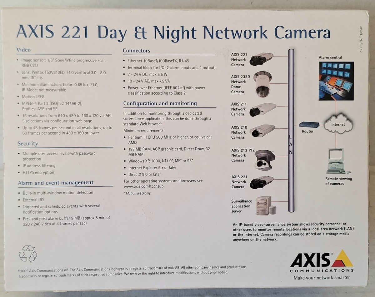 AXIS 221 Day Night POE IP Network Surveillance Security Camera w PENTAX Lens