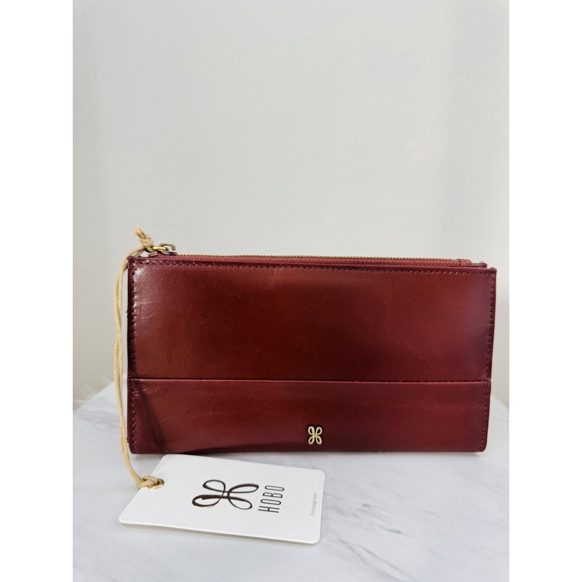 Hobo Jill Large Bifold Polished Leather Wallet, Chocolate Brown, NWT
