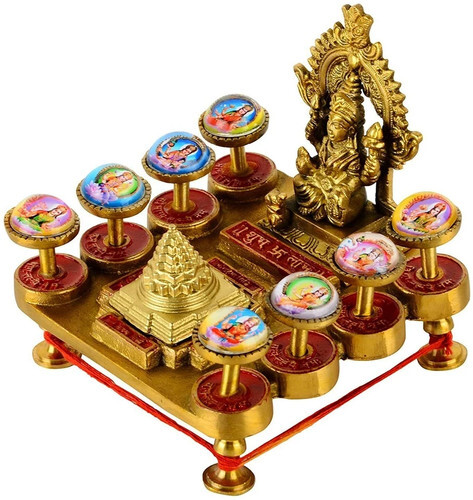 Design: Made in Shining Brass . Color yantras are sealed inside magnified glasses to be visible from all directions.