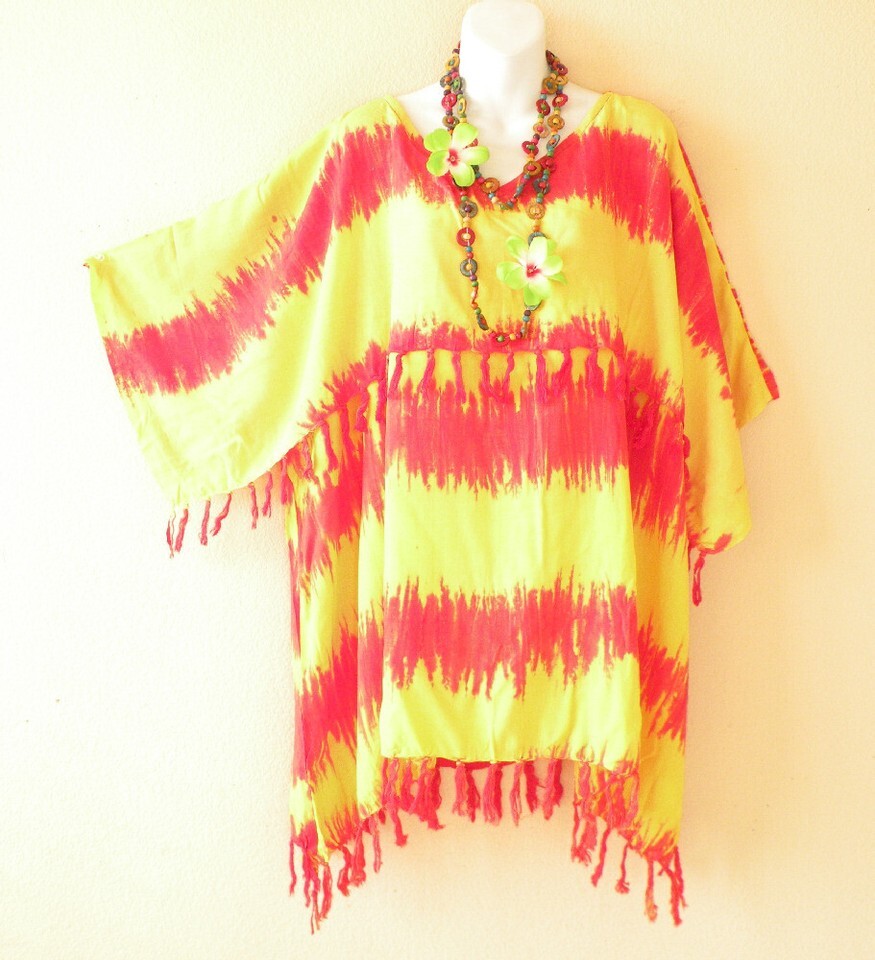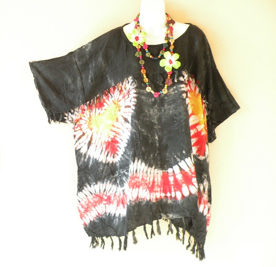 KG18 Tie Dye Plus Kaftan Kimono Sleeve Poncho Fringes Hippie Blouse Top Up to 5X