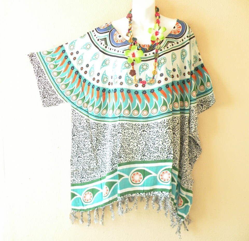 KB108 Teal Paisley Plus Women Kaftan Poncho and 50 similar items