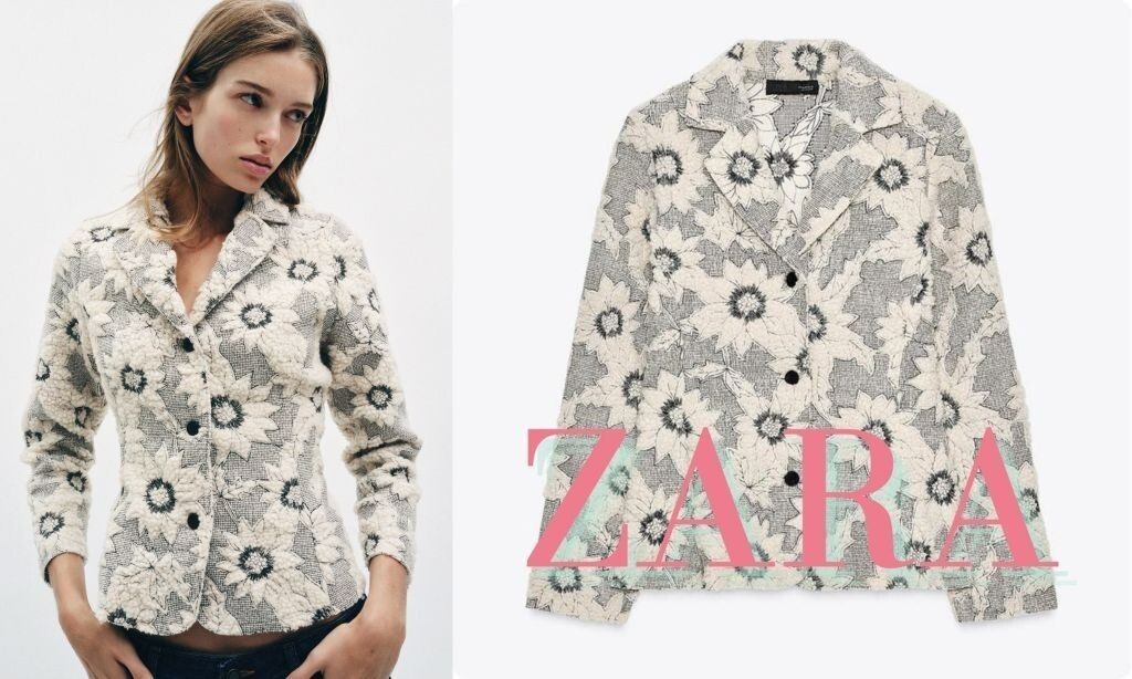 ZARA SOLDOUT FLORAL TEXTURED BLAZER M