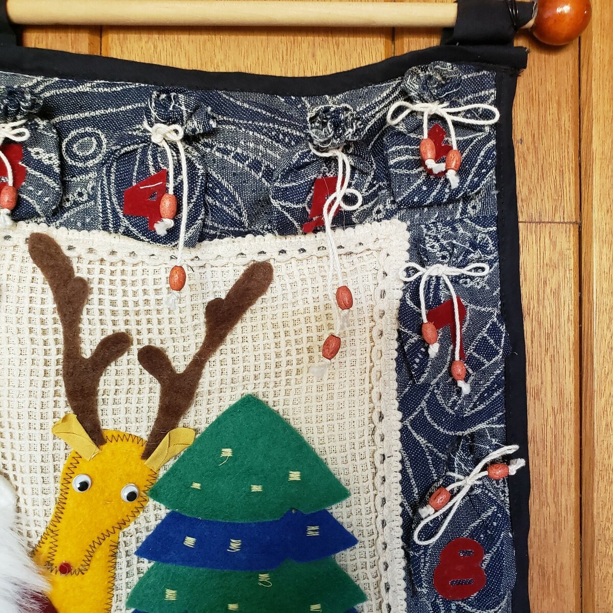 Christmas Advent Calendar Vtg Handmade Felt Applique Needlework Santa Reindeer