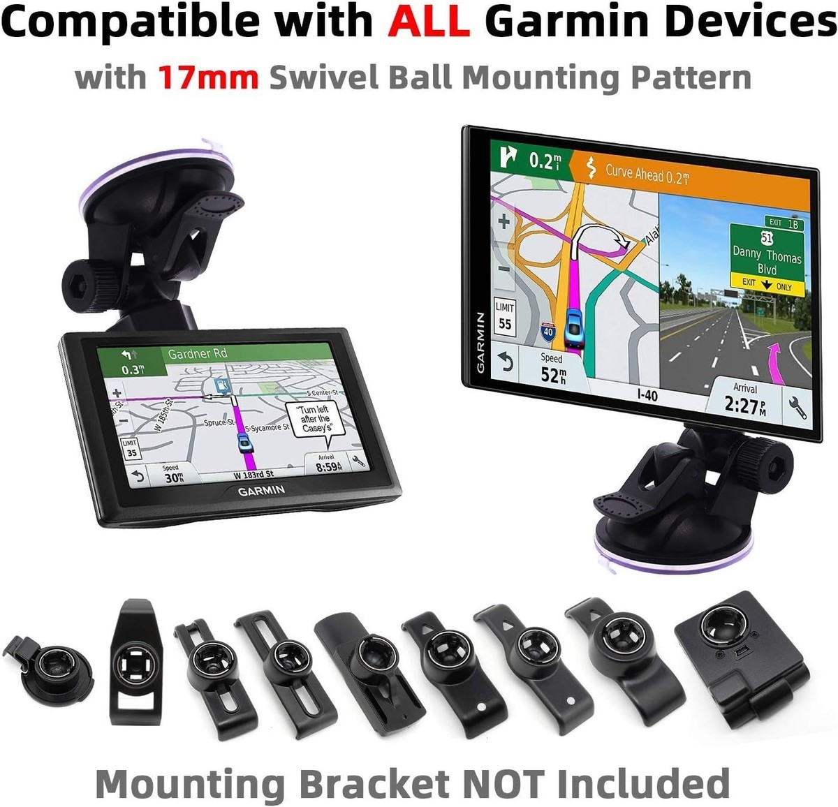 Fits Garmin 3.5 inch - 7 inch Nuvi Drive Drivesmart Dezl Zumo Driveassist DriveLuxe StreetPilot RV GPS Navigator /w 17mm Ball Socket