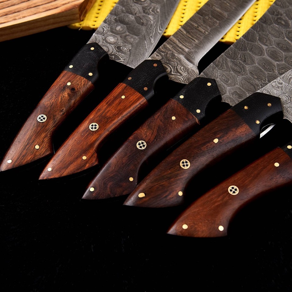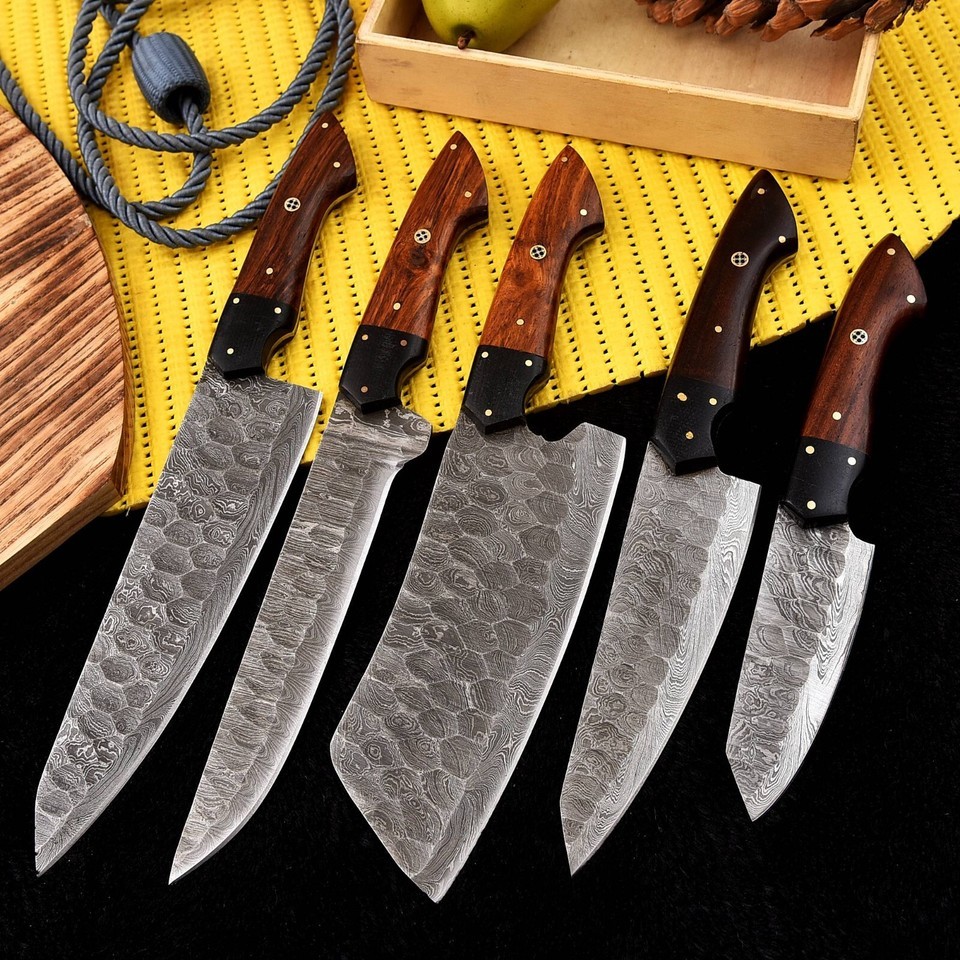 CUSTOM HANDMADE DAMASCUS STEEL CHEF KNIFE SET KITCHEN KNIVES CHEF SET CUTLARY