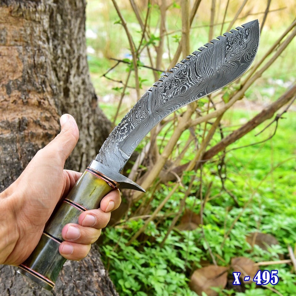 Custom Hand Forged Damascus Steel Hunting Kukri Bowie Knife Leather Sheath