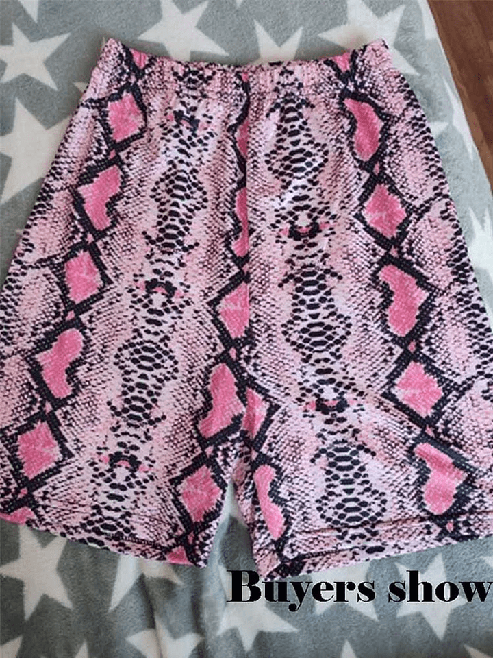 Sexy Women Summer Shorts New Snake Print High Waist Shorts Elastic Waises